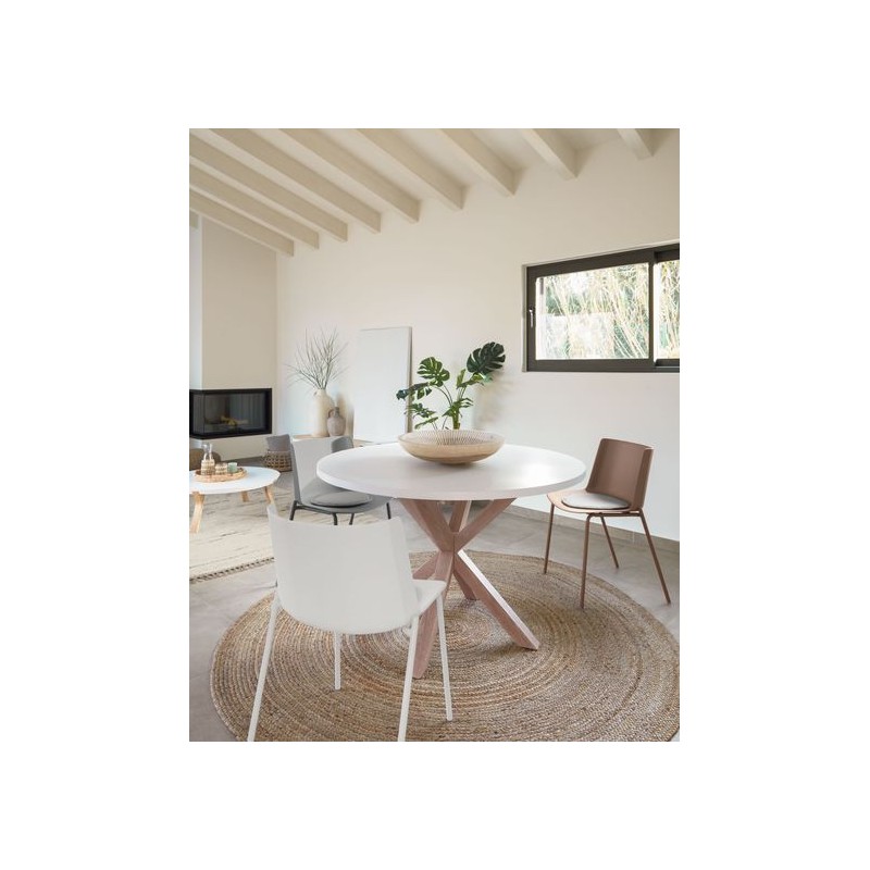 Te presentamos a una de las mesas de comedor de la colección Fulgo, se compone de un tablero en melamina de alta calidad de 30 mm lacado en color blanco y una pata central de acero con efecto madera natural. Lo que destaca de esta colección es su alta durabilidad, además es fácil de limpiar y resistente a cortes y manchas, por eso, el uso diario ya no será un problema.