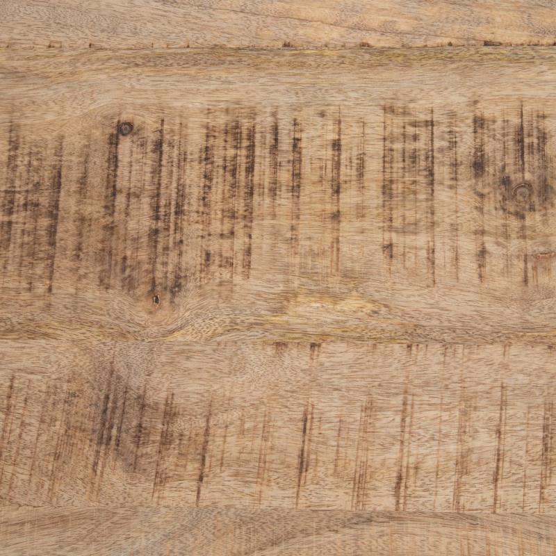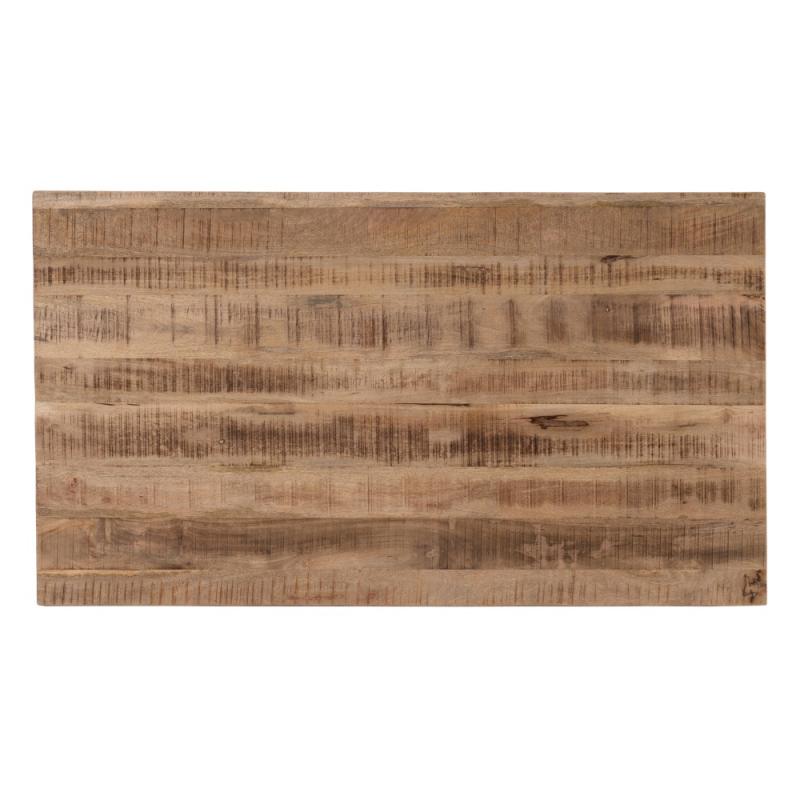 MESA COMEDOR NATURAL-NEGRO 180 X 100 X 76 CM Material: madera de mango. Patas de hierro de 50x100cm. Grosor del tablero: 6cm. La superficie del sobre puede no ser totalmente lisa debido a su fabricación manual con listones de madera maciza.