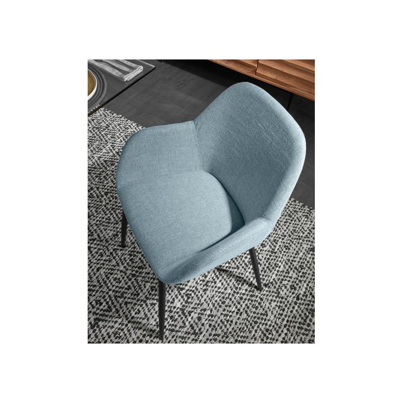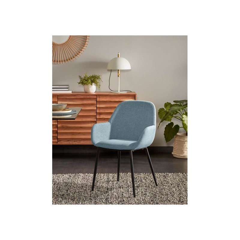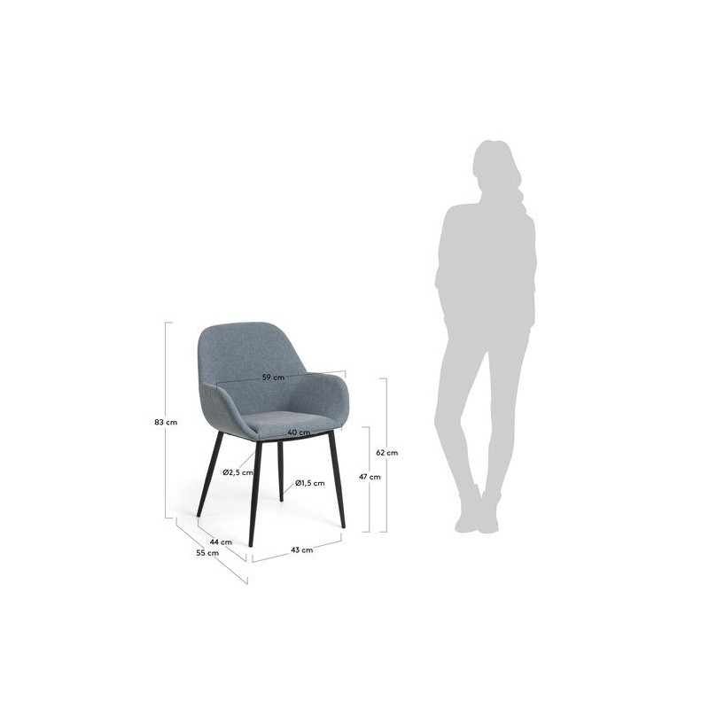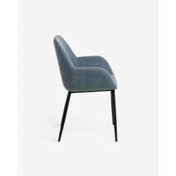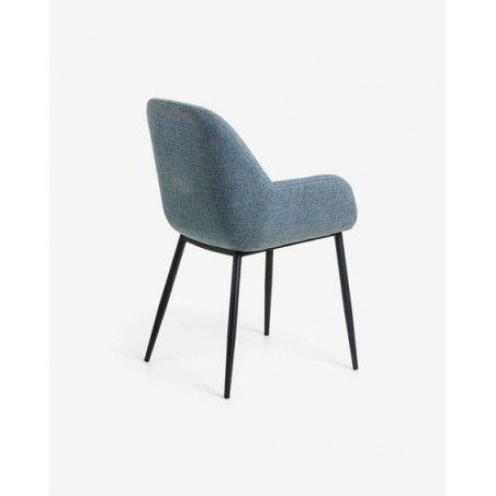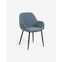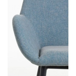Diferentes tonalidades, tejidos, color de patas..., múltiples variedades podrás encontrar en la colección de sillas para comedor modelo Kun . En este caso te presentamos el modelo fabricado en tejido azul claro, con estructura rellena de espuma que ofrece un confort inmejorable y una sensación de relax que no querrás perderte. También la definimos como resistente y duradera gracias a sus patas fabricadas en acero acabado en color negro.