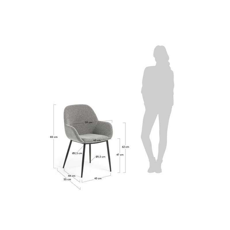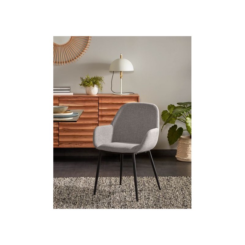 Diferentes tonalidades, tejidos, color de patas..., múltiples variedades podrás encontrar en la colección de sillas para comedor modelo Kun . En este caso te presentamos el modelo fabricado en tejido gris claro, con estructura rellena de espuma que ofrece un confort inmejorable y una sensación de relax que no querrás perderte. También la definimos como resistente y duradera gracias a sus patas fabricadas en acero acabado en color negro.